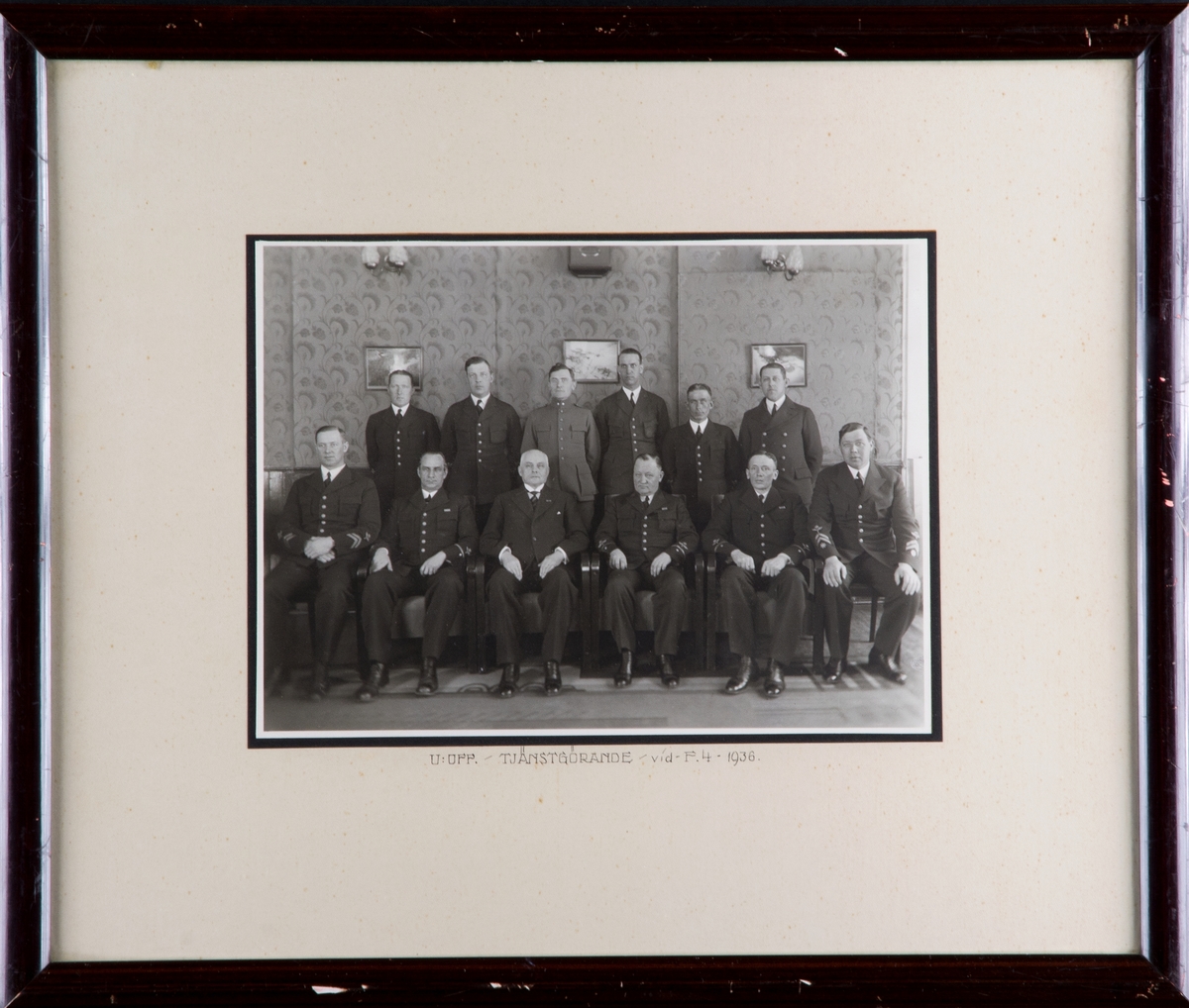 Grupporträtt av underofficerare vid F 4, 1936. Inramat foto.