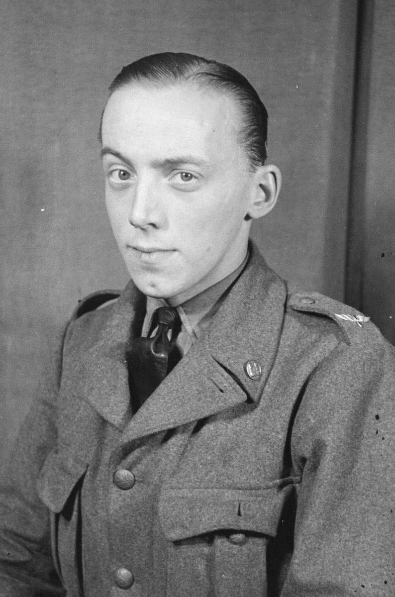 Porträttfoto av soldat Andrew Hessen-Croon (nummer 781), mekaniker vid F 19, Svenska frivilligkåren i Finland under finska vinterkriget, 1940.