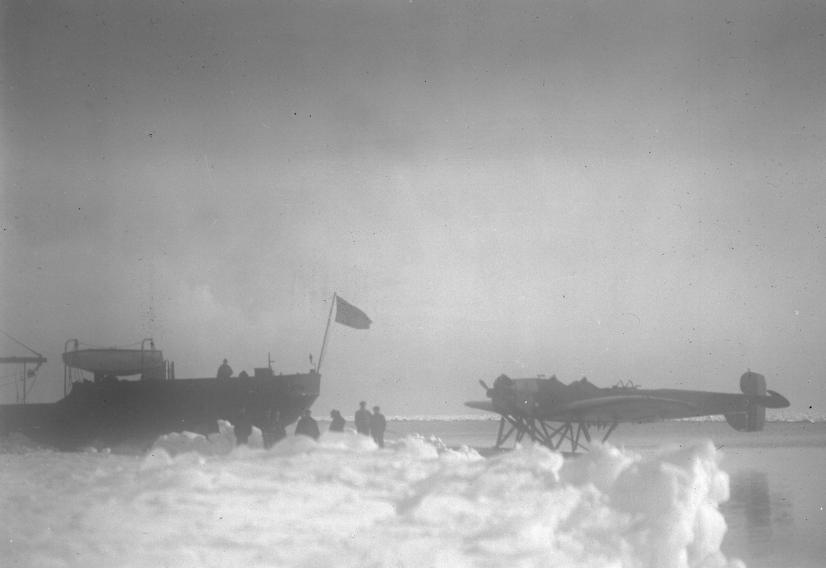 Ett sjöflygplan av typ S 5 provianterar en i isen infrusen båt.