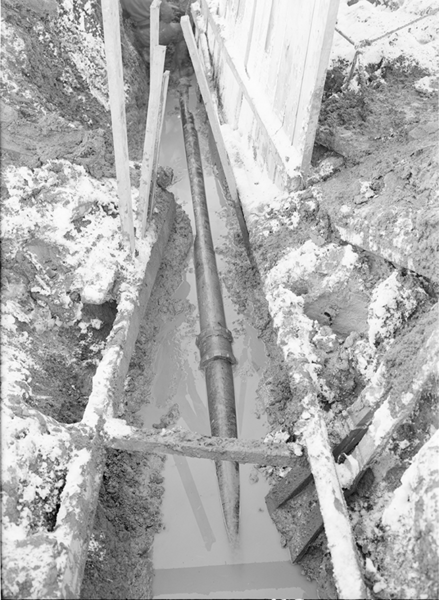 Vattenledningsrör under reparation på F 2 Roslagens flygflottilj.