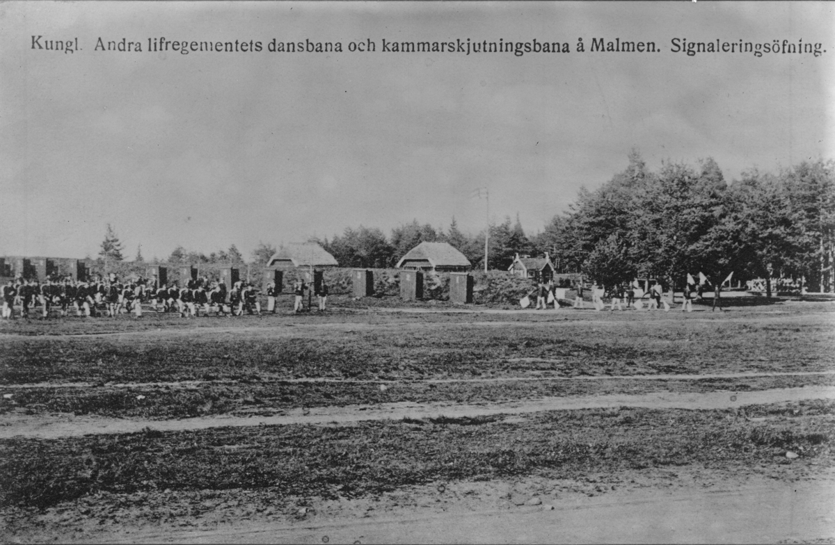 Signaleringsövning på andra livgrenadjärregementet I 5 på Malmen. Avfotografering av vykort.