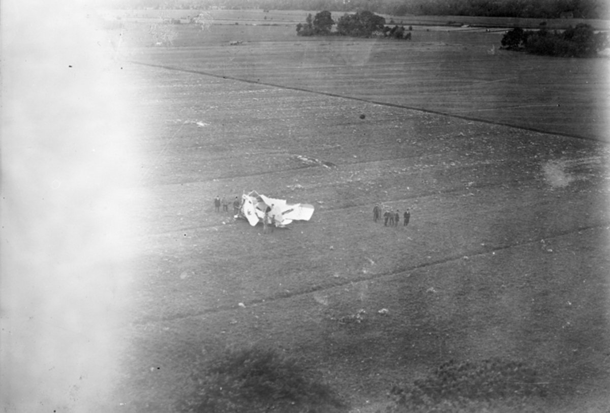 Haveri vid Jätsberg, flygfotografi. Män runt flygplanet.