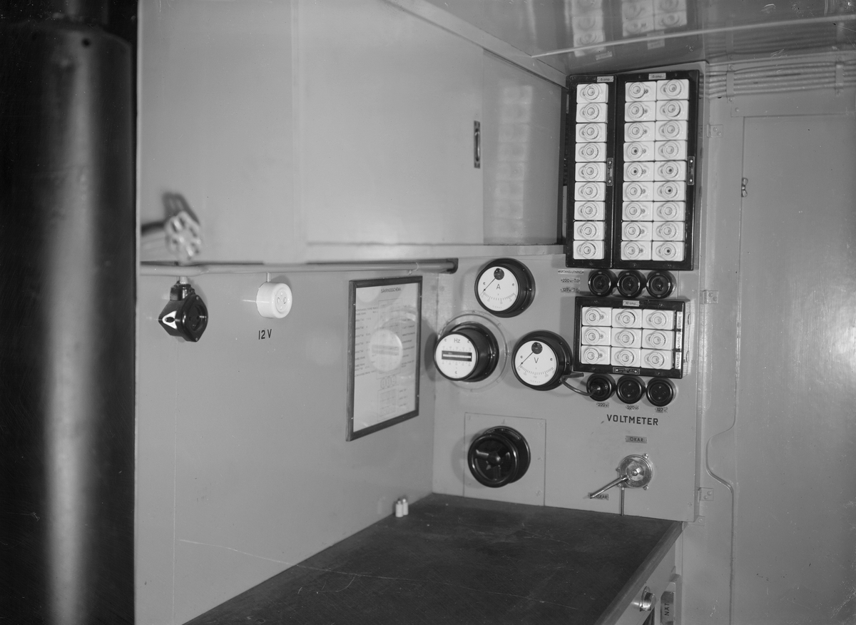 Elsäkringsinstrument i fotobil modell m/42. Interiör.