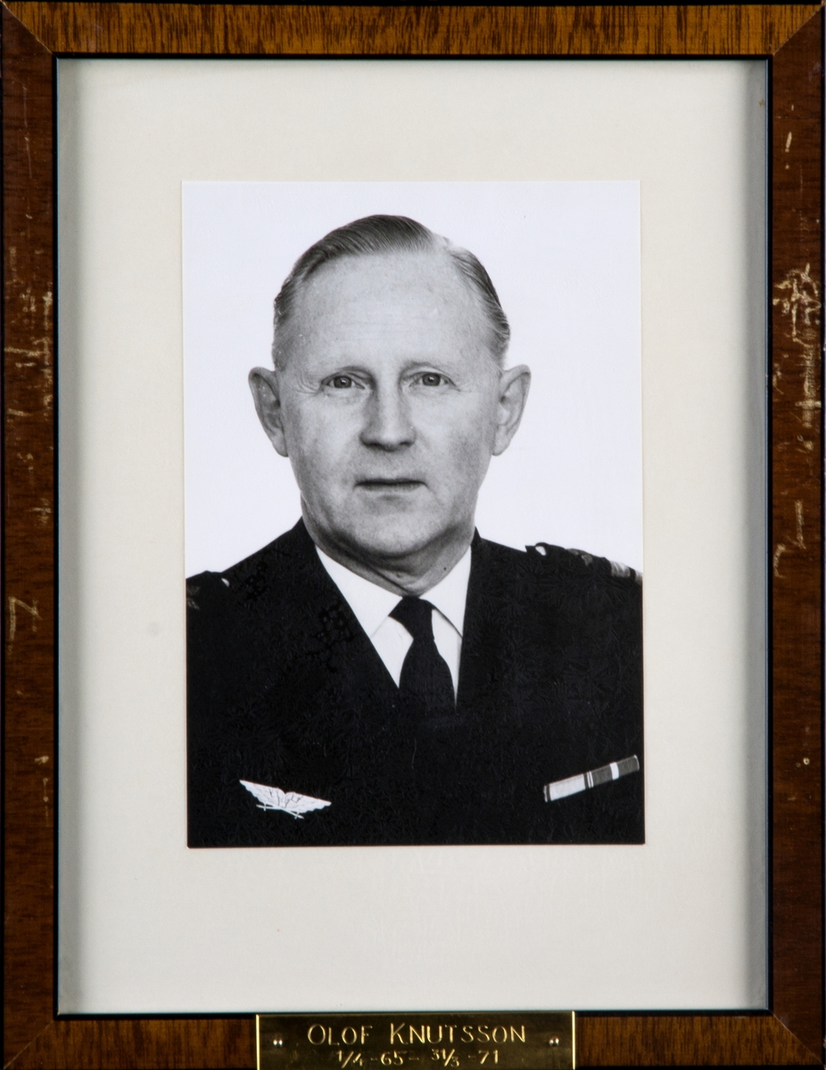 Porträttfotografi av Olof Knutsson, chef för F 3 Östgöta flygflottilj 1965-1971. Inramat foto.