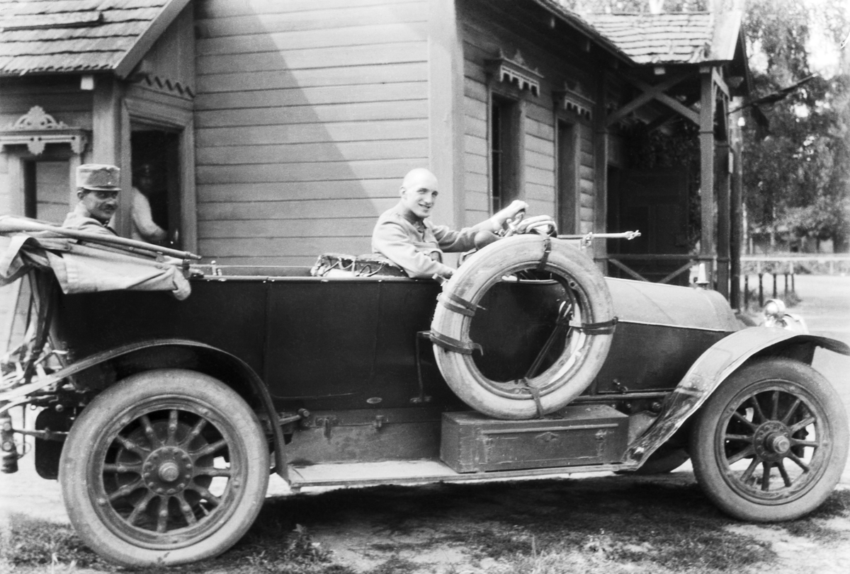Två militärer från Österrike-Ungern sitter i en bil under första världskriget.