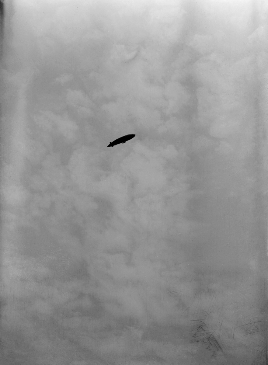 Militärt luftskepp i luften över Österrike-Ungern. Vy underifrån.