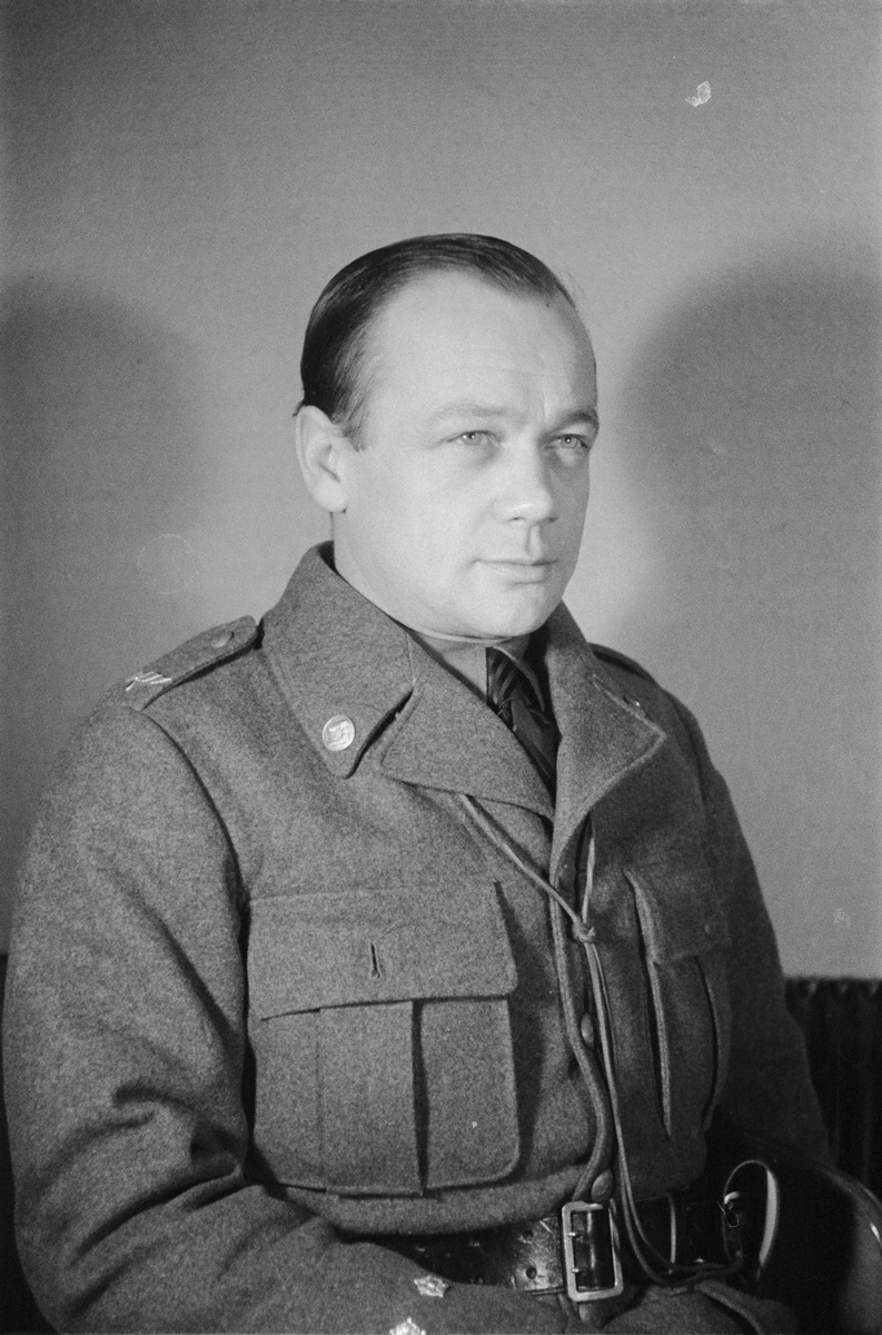 Porträttfoto av fältväbel Knut Ebbe Holmqvist (nummer 2813), motormontör vid F 19, Svenska frivilligkåren i Finland under finska vinterkriget, 1940.
