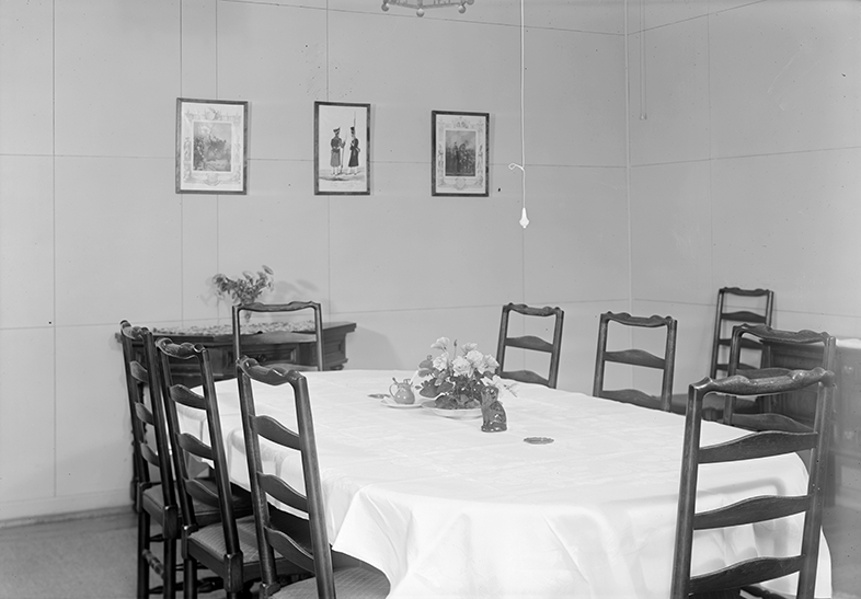 Lilla matsalen på officersmässen på F 3 Malmen, 1945. Interiör.