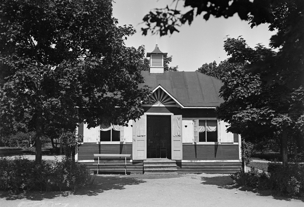 Exteriör av mindre byggnad på regementsområdet på Malmen, omkring 1921-1924.