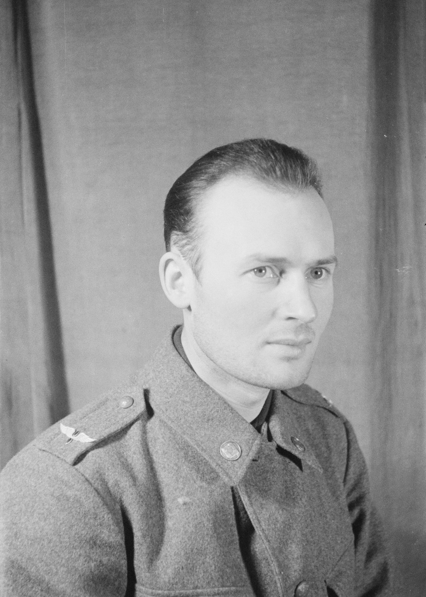 Porträttfoto av sergeant Erik Valter Persson (nummer 1202), mekaniker i Kemijärvi vid F 19, Svenska frivilligkåren i Finland under finska vinterkriget, 1940.