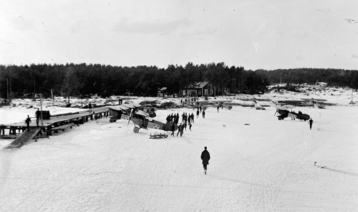 Hägernäs flygstation år 1922. Översiktsbild med flygverksamhet i gång.