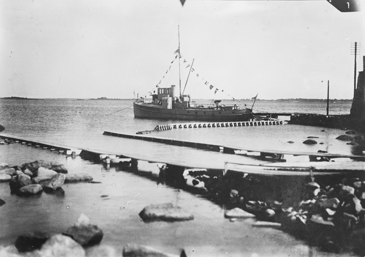 Fartyg vid pir på Karlskrona flygstation på Stumholmen.