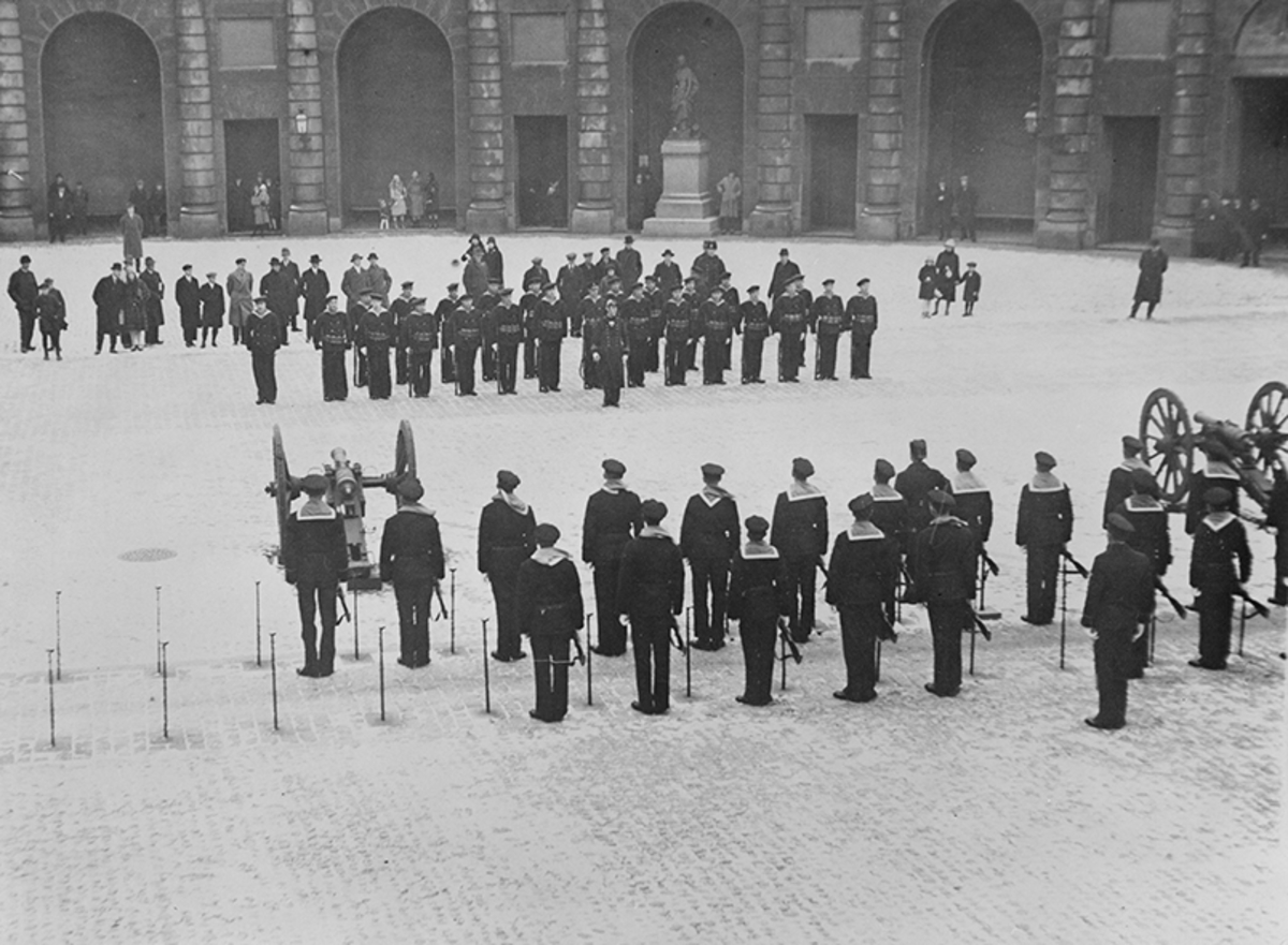Marinen går högvakt vid Kungliga slottet i Stockholm.
