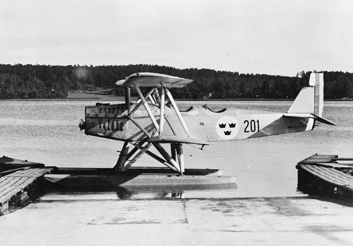 Flygplan SK 4 på vatten vid sjösättningsrampen vid F 2 Hägernäs.
