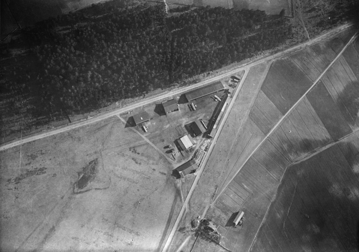 Flygfotografi över Flygkompaniets hangarer på Malmen.
