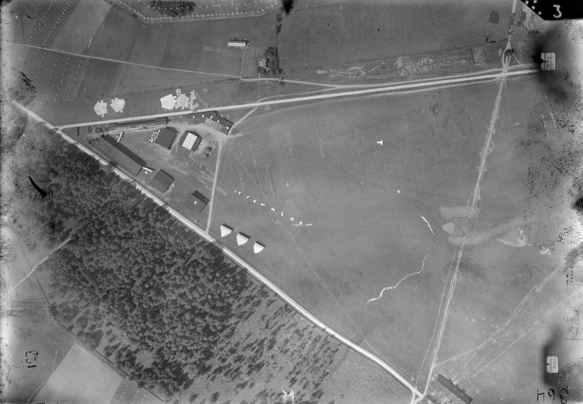 Flygfotografi över flygspanarskolan på Malmen. Omkring 1918.