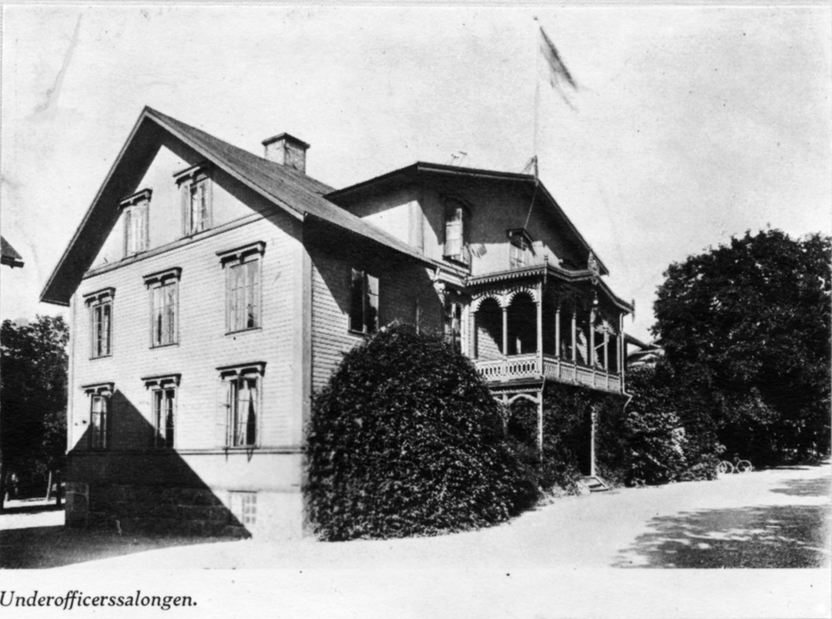 Exteriör av underofficerssalongen på Malmen. Avfotografering av bild ur tryck.
