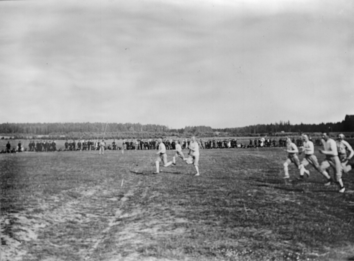Idrott på livgrenadjärregementet på Malmen. Åskådare i bakgrunden.
