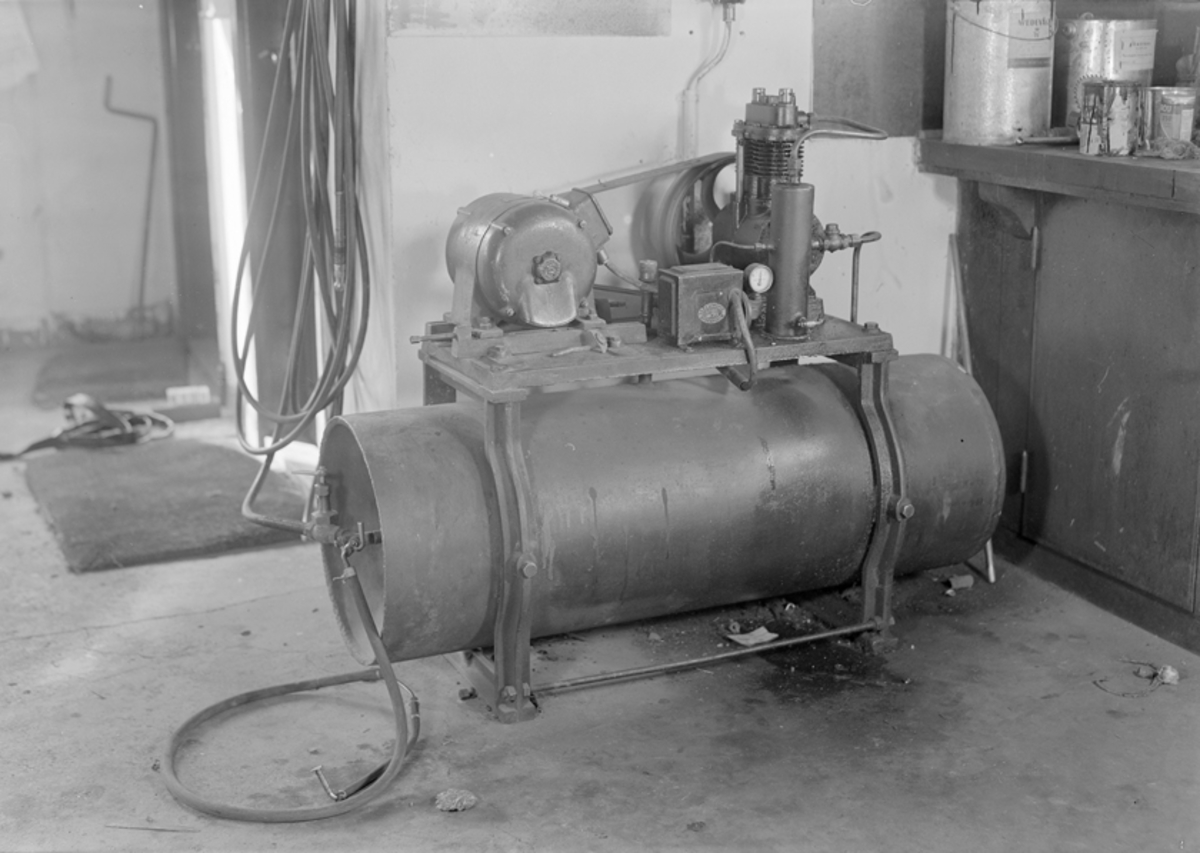 Äldre kompressoranläggning, garaget på F 3 Malmen.