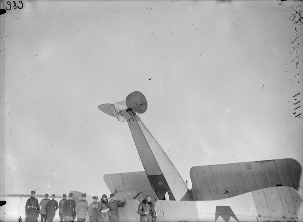Haveri. Ett flygplan Thulin har landat på nosen. En grupp männsikor står framför flygplanet.