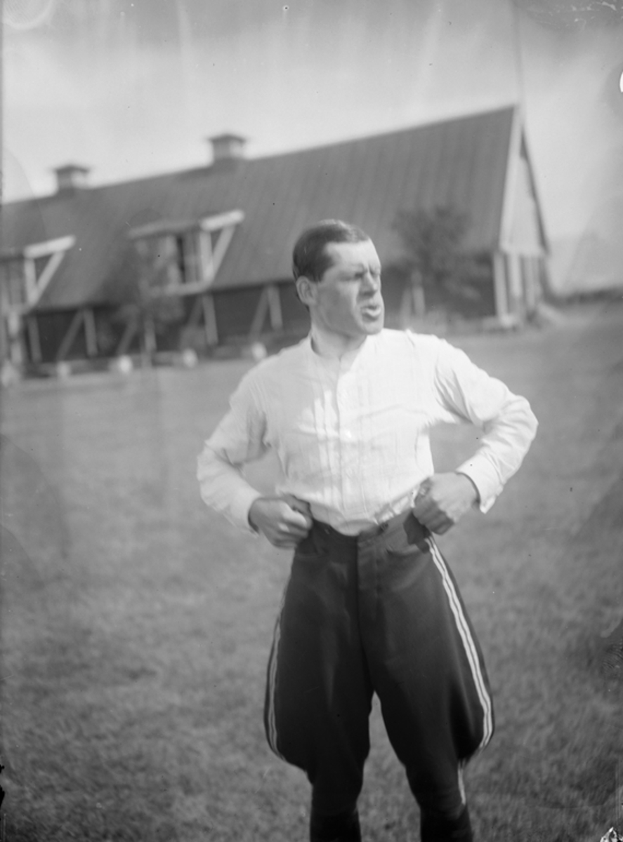 Porträtt av en löjtnant framför en byggnad på Malmen.
