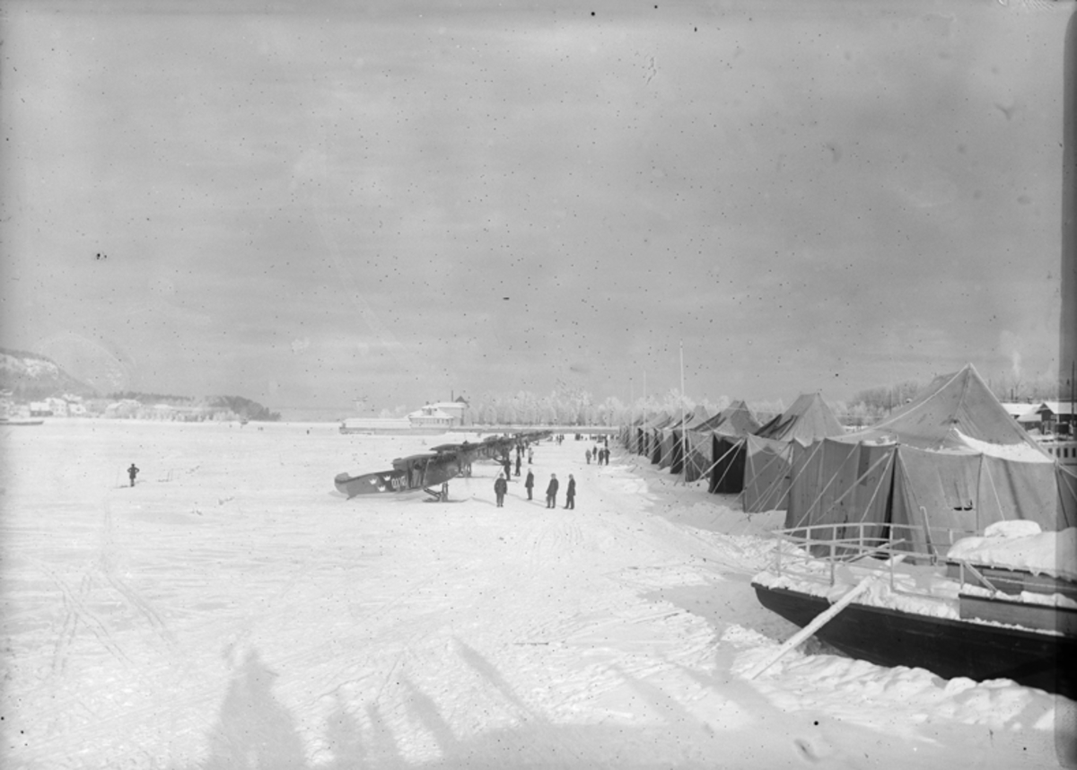 Flygstationen i Östersund. Flertal flygplan Phönix E.1 framför tälthangarer.
