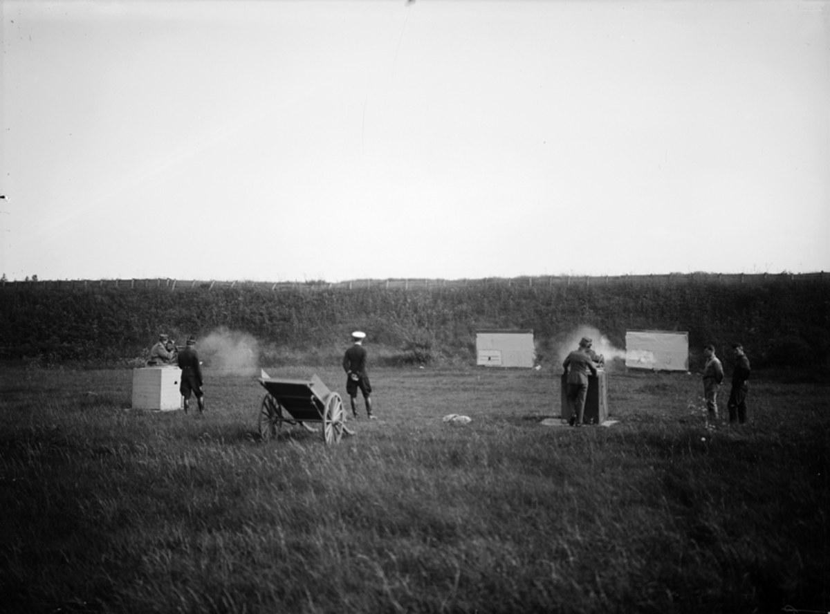 Övning. Skjutning med kulspruta mot måltavla på F 3 Malmen. Avfyrning.