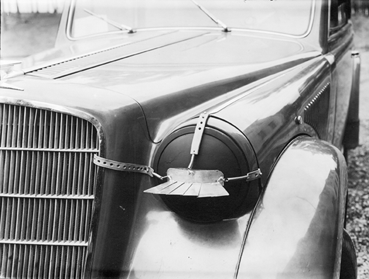 Avskärmningsanordning för strålkastare på bil på F 2 Roslagens flygflottilj.