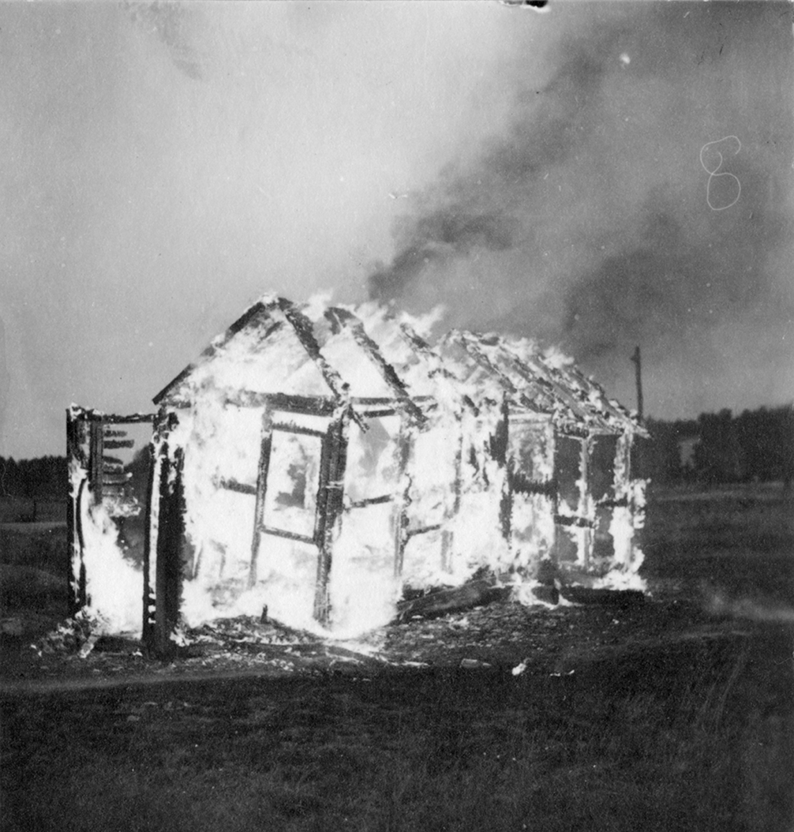 Brandövning, eldsläckning på F 2 Roslagens flygflottilj. Övertänt uthus.