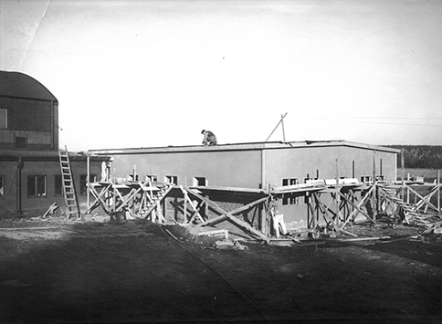 Tygexpeditionen på F 2 Roslagens flygflottilj byggs. Rest byggnad.