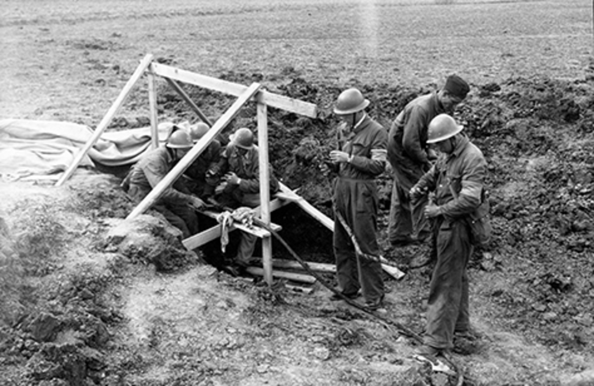 Reparation av elkabel på F 2 Roslagens flygflottilj. Efter luftskyddsövning