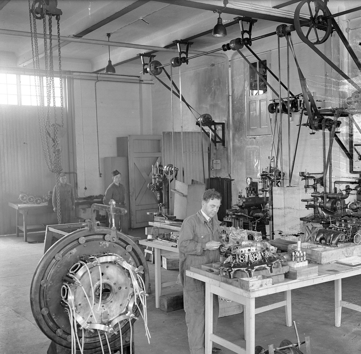 Motorservice i hangar på F 2 Roslagens flygflottilj, 1938.