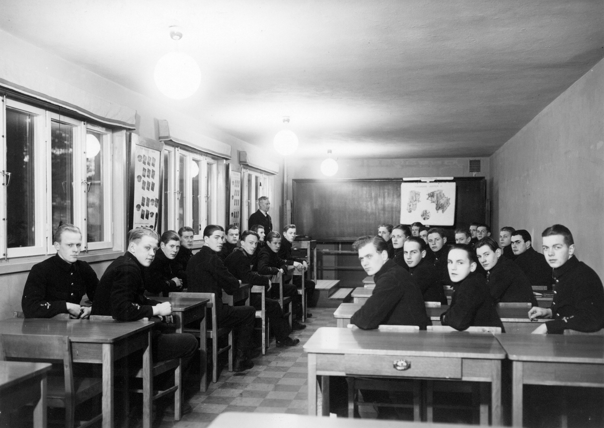 Elever i skolsal i kasern I, på F 2 Roslagens flygflottilj, 1939.