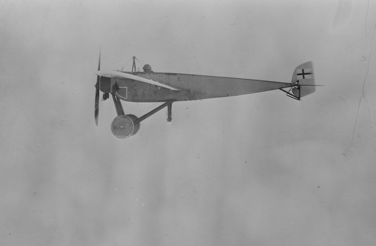 Flygplan Thulin typ B nummer 5 i luften, sett från sidan.