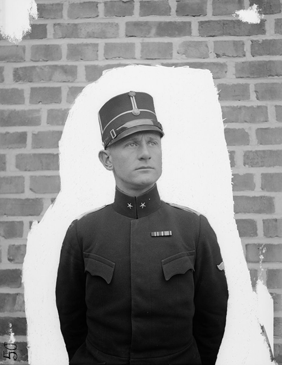 Porträtt av löjtnant Einar Lundborg, militäre flygförare. Maskerat foto.