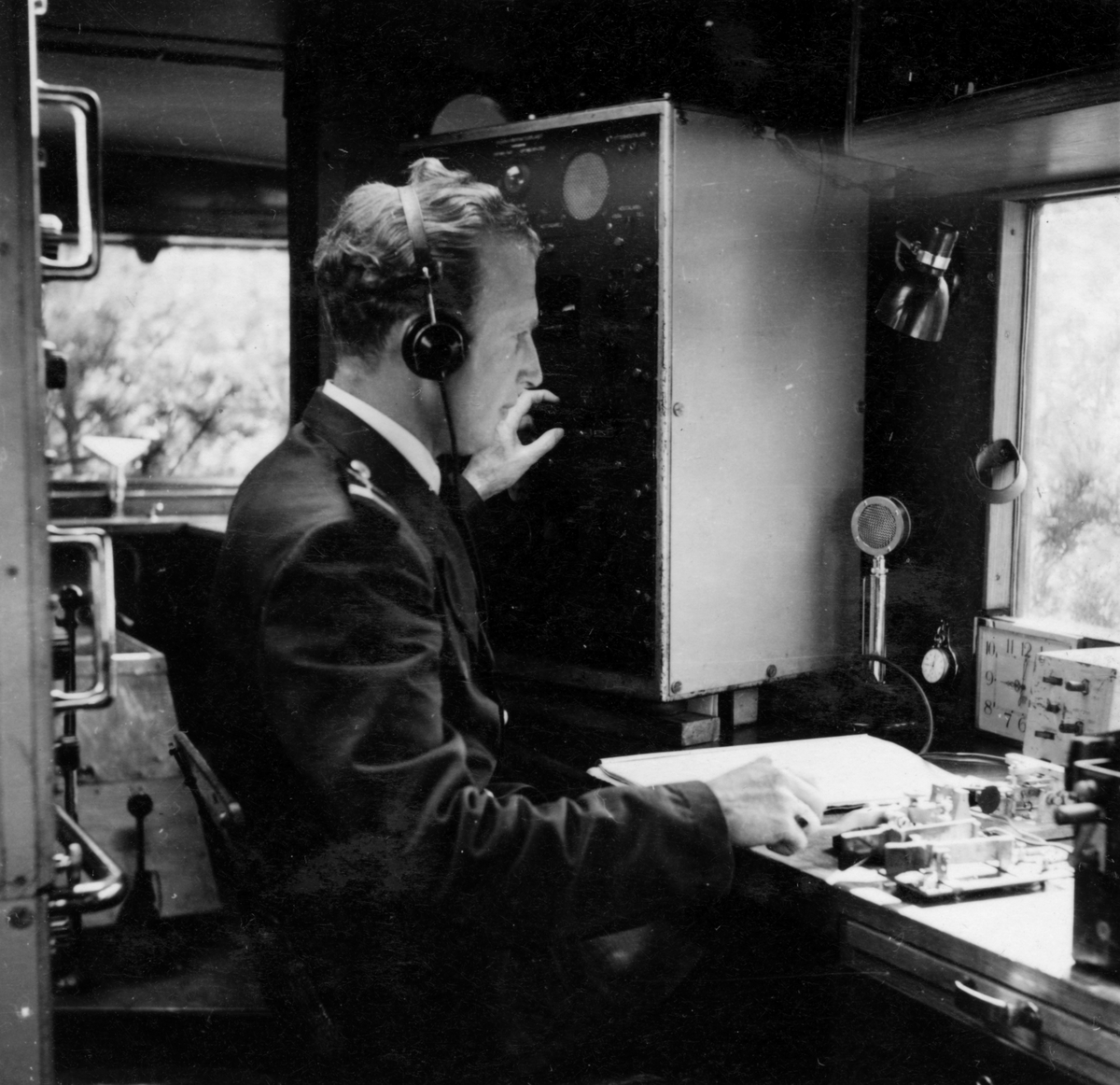 Radiotelegrafist i arbete på F 3 Östgöta flygflottilj, tidigt 1940-tal.