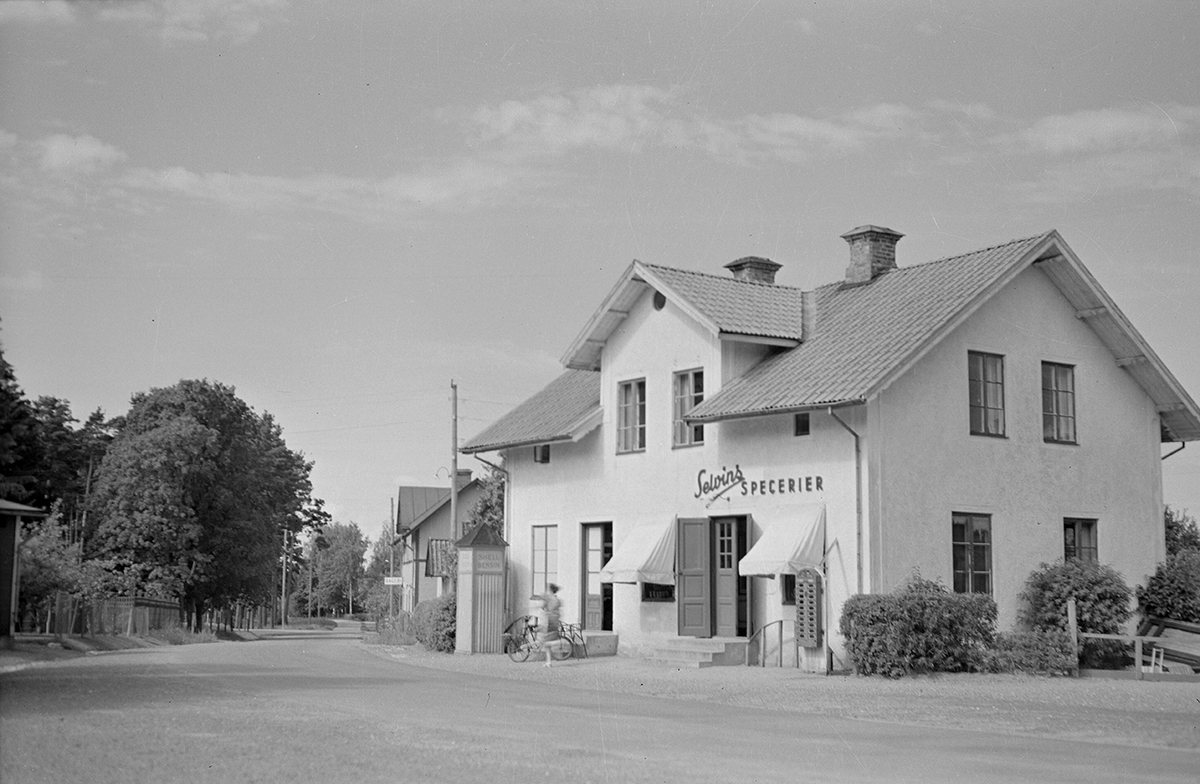 Lägergatan i Malmslätt med Selvins specerier, 1940-tal.