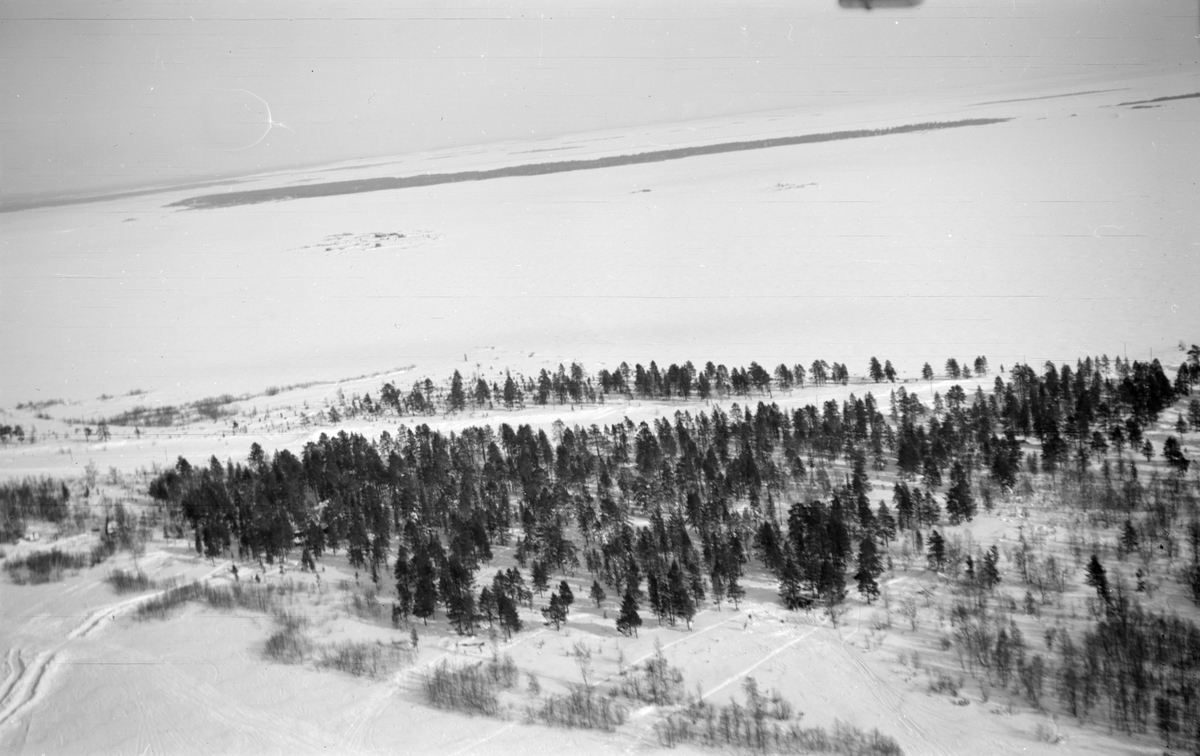 Flygfotografi över landskap vid F 19, Svenska frivilligkåren i Finland.