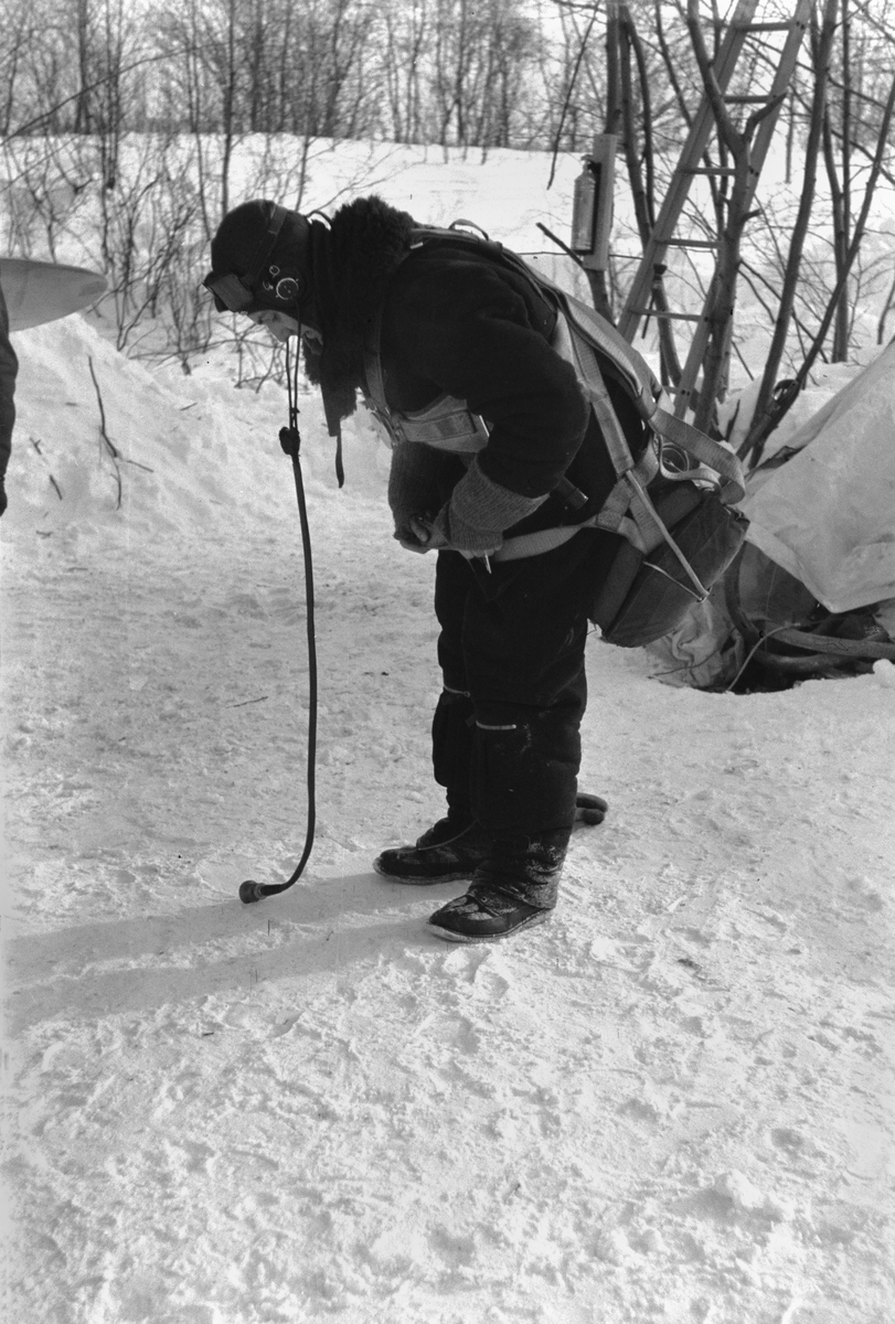 En flygförare tar på sig flygutrustning. Vid F 19, Svenska frivilligkåren i Finland, 1940.