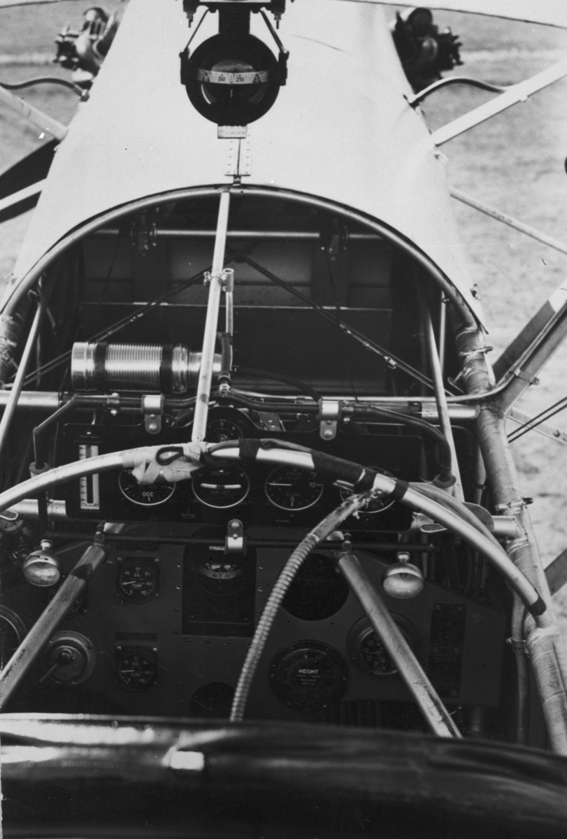 Förarsitsen i flygplan S 6, Fokker C.V. En termos ligger vid höjdmätaren.