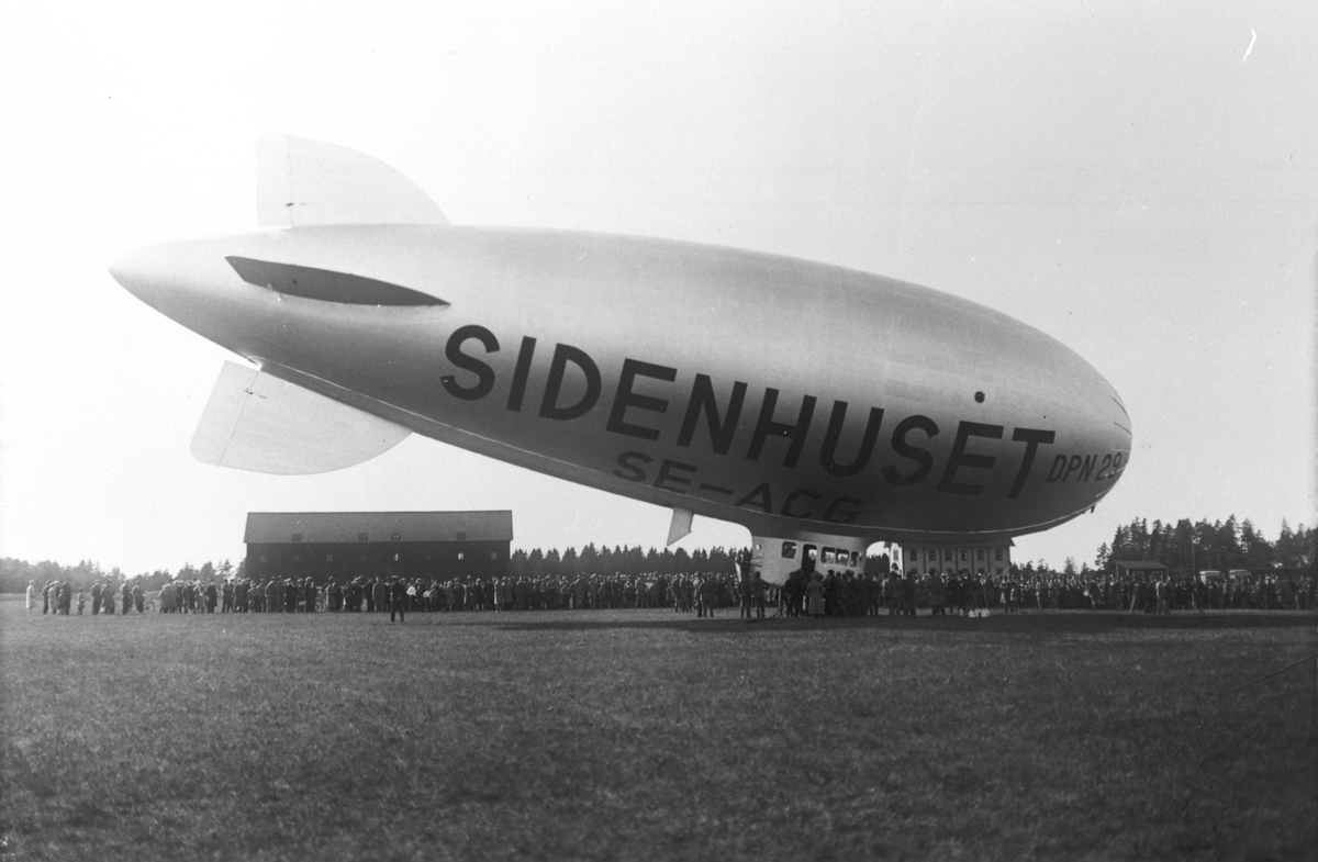 Luftskepp "Sidenhuset", SE-ACG mellanlandar på Malmen 15 maj 1930.