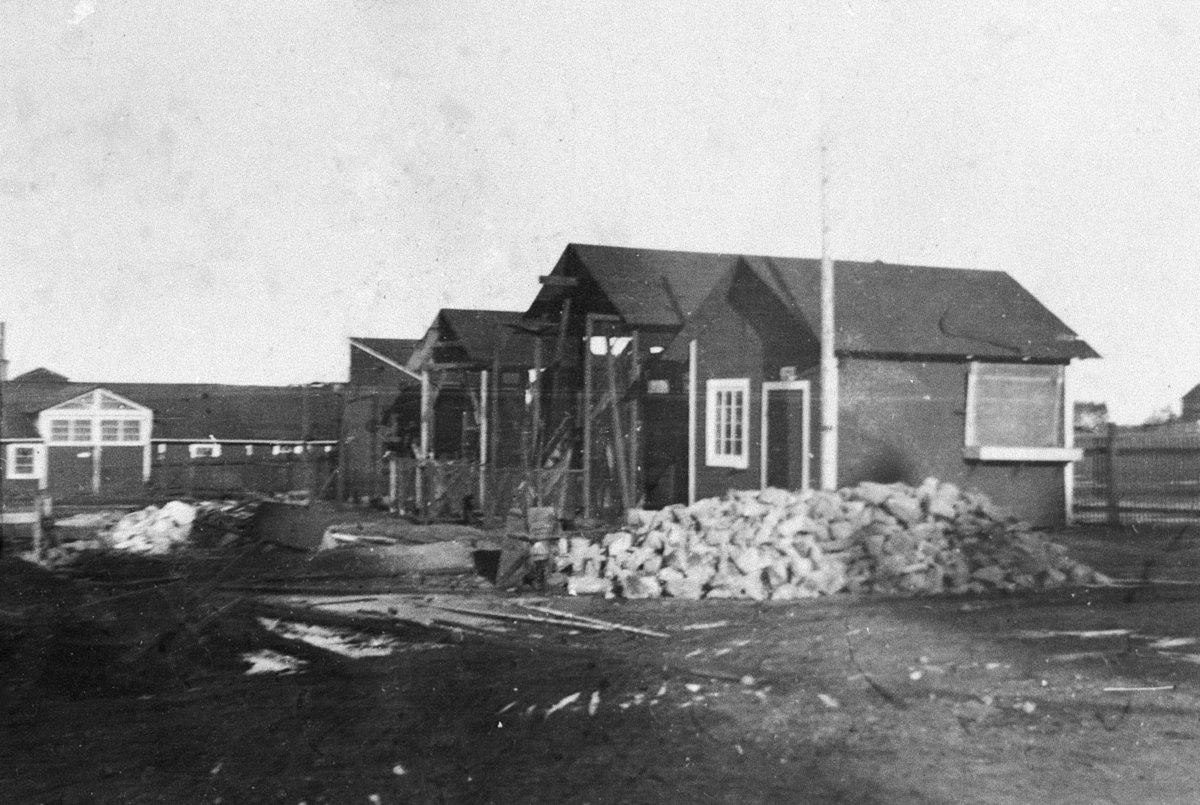 Exteriör av motorprovbockarna på Flygkompaniets verkstäder Malmen, 1920-tal.