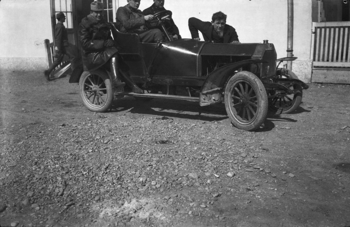Fyra män sitter i en bil. I Österrike-Ungern under faörsta världskriget.