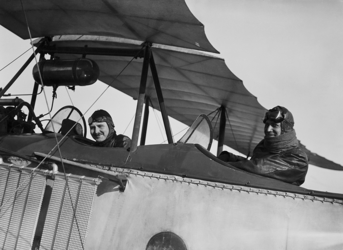 Två flygare på plats i militärt flygplan tillhörande Österrike-Ungern.