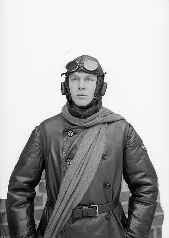 Porträtt av sergeant Ferdinand Cornelius, militär flygförare vid Flygkompaniet. Maskerat foto.