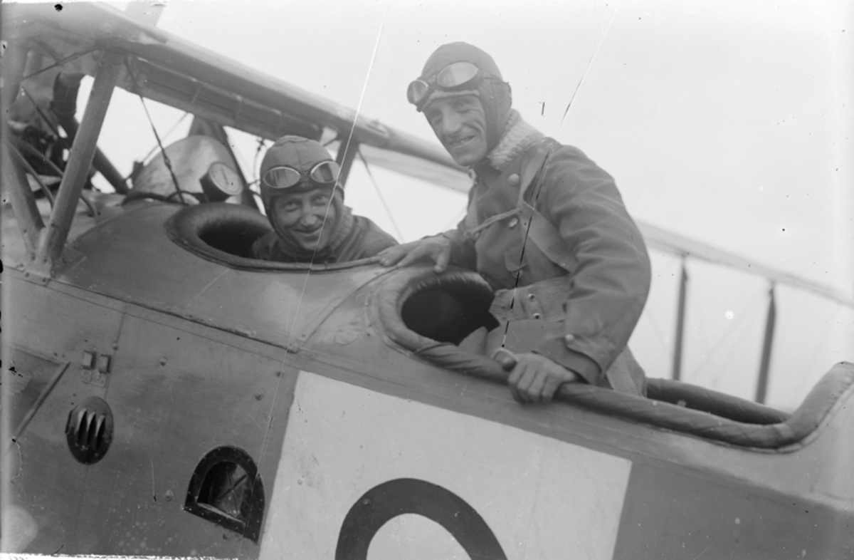 Porträtt av löjtnant och kapten i flygplan LVG C.VI som tillhörde Svensk Lufttrafik AB.