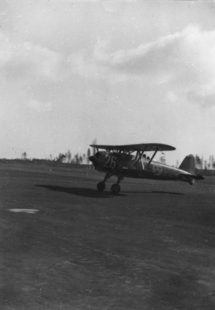 Flygplan J 11 märkt nr 26 tillhörande F 9, startar från flygfältet på F 21 Kallax, omkring 1942.