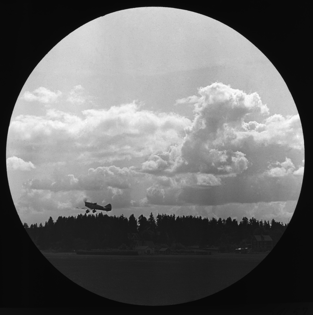 Flygplan Sparmann S-1a, registrering SE-ADX, i luften efter start. Vy från sidan.