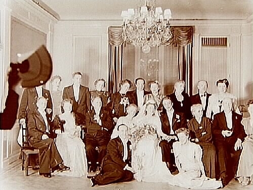 Titel: Karl Erik och Ingabritts bröllop på Köpmännens hus. Sam Lindskogs familjebild.