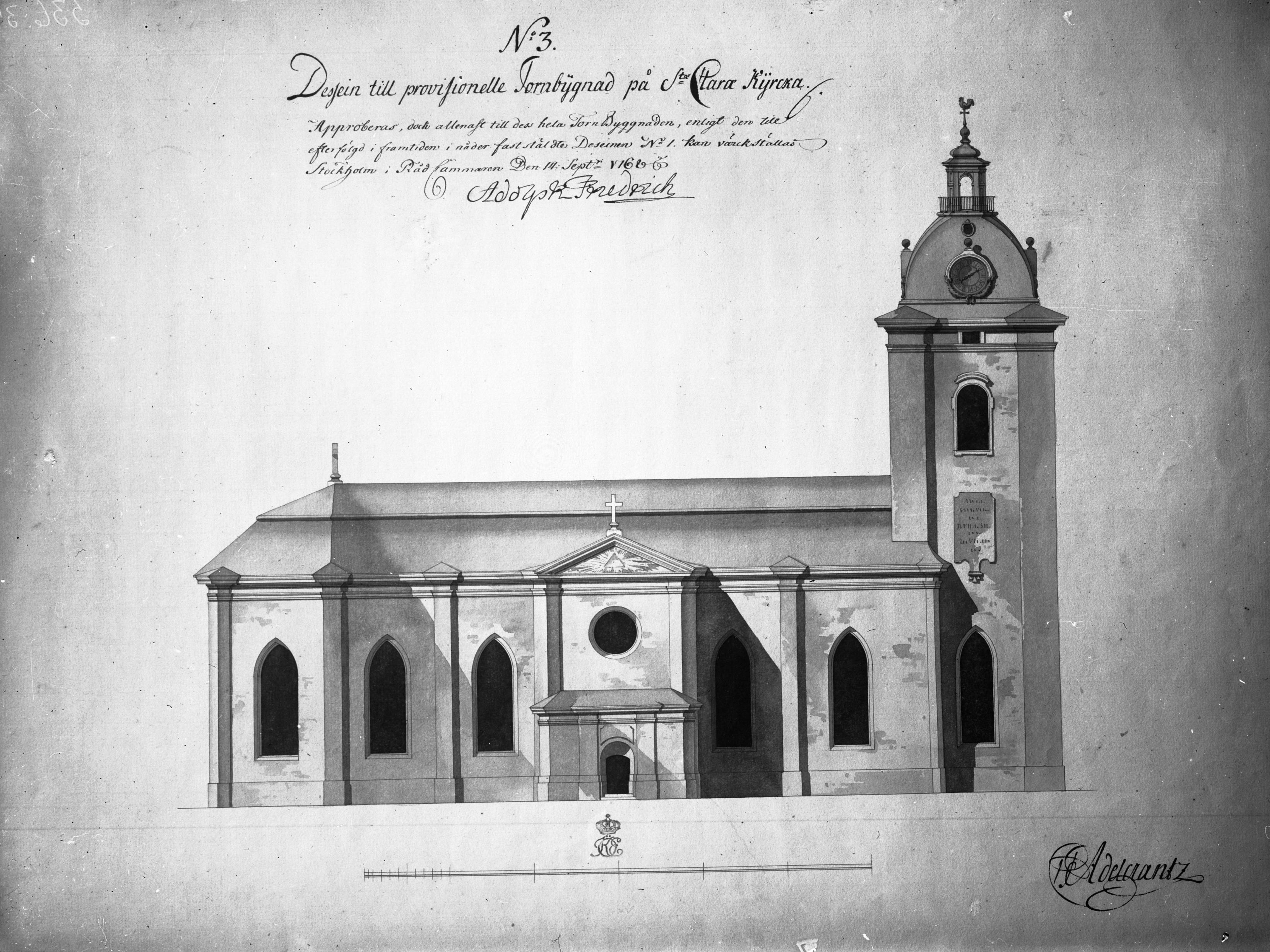 Förslag till provisoriskt torn. Foto efter ritning av C. F. Adelcrantz 1766.